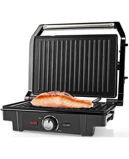 Cuoci alla griglia i panini perfetti o anche la carne, il pesce o le verdure con questa griglia a contatto Nedis. Grazie alla potenza di 1500 Watt, questa griglia a contatto si riscalda molto rapidamente. Regola la temperatura desiderata con la manopola di comando mentre la spia indica esattamente quando la griglia a contatto è pronta per l'uso. Il sistema a cerniera flottante consente di cuocere alimenti più grandi su una superficie di cottura di 27,8 x 17 cm e può essere bloccato per evitare che gli alimenti vengano appiattiti. È possibile aprire la griglia a contatto anche a 180⁰, in modo da poterla utilizzare come griglia da tavolo.