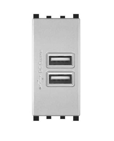 Alimentatore doppia presa USB 90-265V output 5V 2A grigio compatibile Vimar Plana
