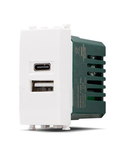 Doppia presa USB USB A - USB tipo C 5V 2.4A compatibile Vimar Plana