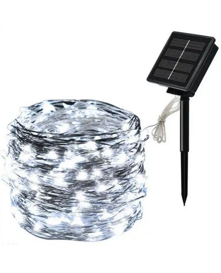 Striscia LED luce fredda in filo di rame 10m 100 led con pannello solare