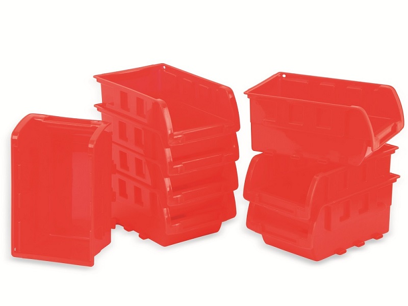 Pratici contenitori impilabili in plastica resistente agli urti per riporre piccoli pezzi come manopole a vite, ecc.