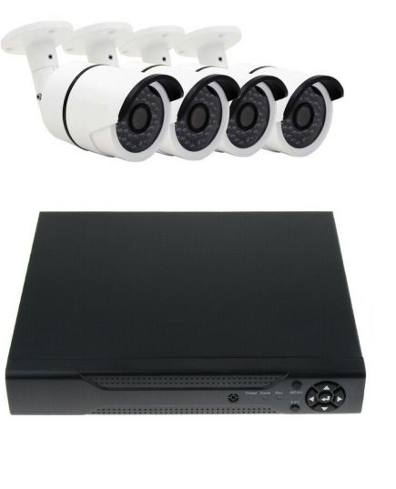 Kit Completo di Videosorveglianza AHD composto da 4 telecamere per esterno, registratore DVR 4 canali, matassa di cavo di rete e spinotti. Un impianto COMPLETO dove non occorre nient'altro.