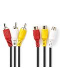Cavo Video Composito 3x RCA maschio-3x RCA femmina 2m Nero