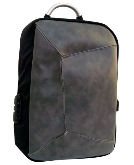 Zaino multifunzione antifurto imbottito con combinazione USB grigio-nero