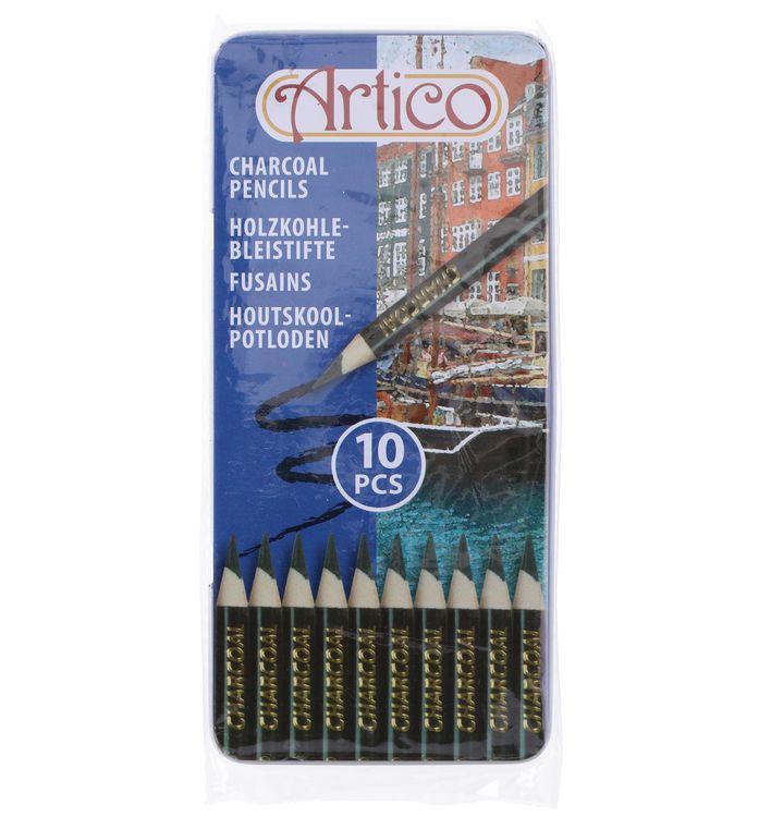 Questo set è composto da matite con mina in carboncino e rivestimento in legno resistente.