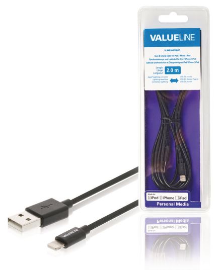 Sincronizzazione e Ricarica Apple Lightning-USB A Maschio 2m Nero